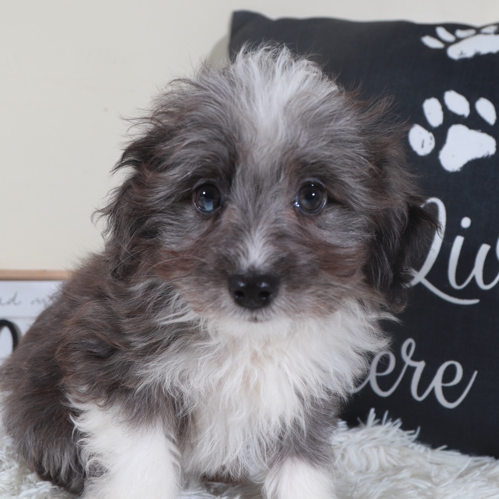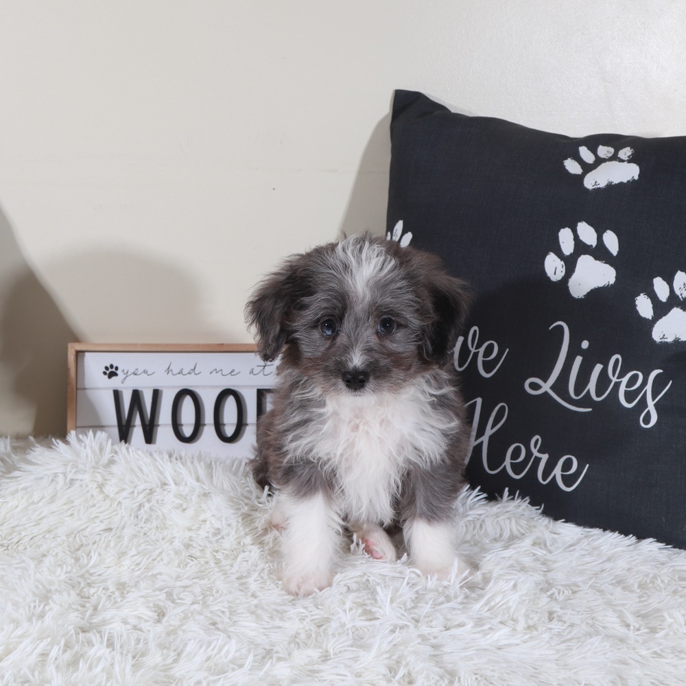 Meet our sweet Toy Aussiepoo puppy, the perfect mix of playful energy and loving companionship! This little one is a delightful blend of Australian Shepherd intelligence and Poodle charm, making them smart, affectionate, and easy to train.