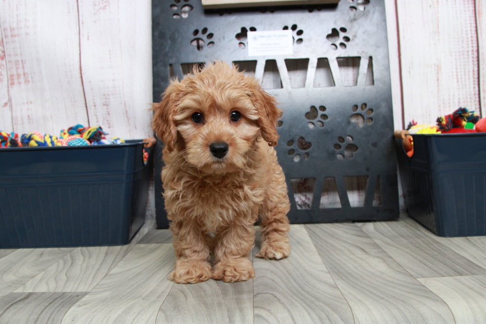Woof is a spunky cavapoochon puppy. Woof loves to play and will follow you around, he loves to play with his siblings. Woof loves to play with the other pups, and is a very gentle pup. He will make a great companion! He is up to date on his shots and de-wormings. He also comes with a one year health warranty. He is very lovable and would love to be a part of your family. He will also be microchipped for only $49.99! Visit our website www.gapuppiesonline.com to see more puppies for sale in Georgia or call us at 678-502-0930 with any questions.